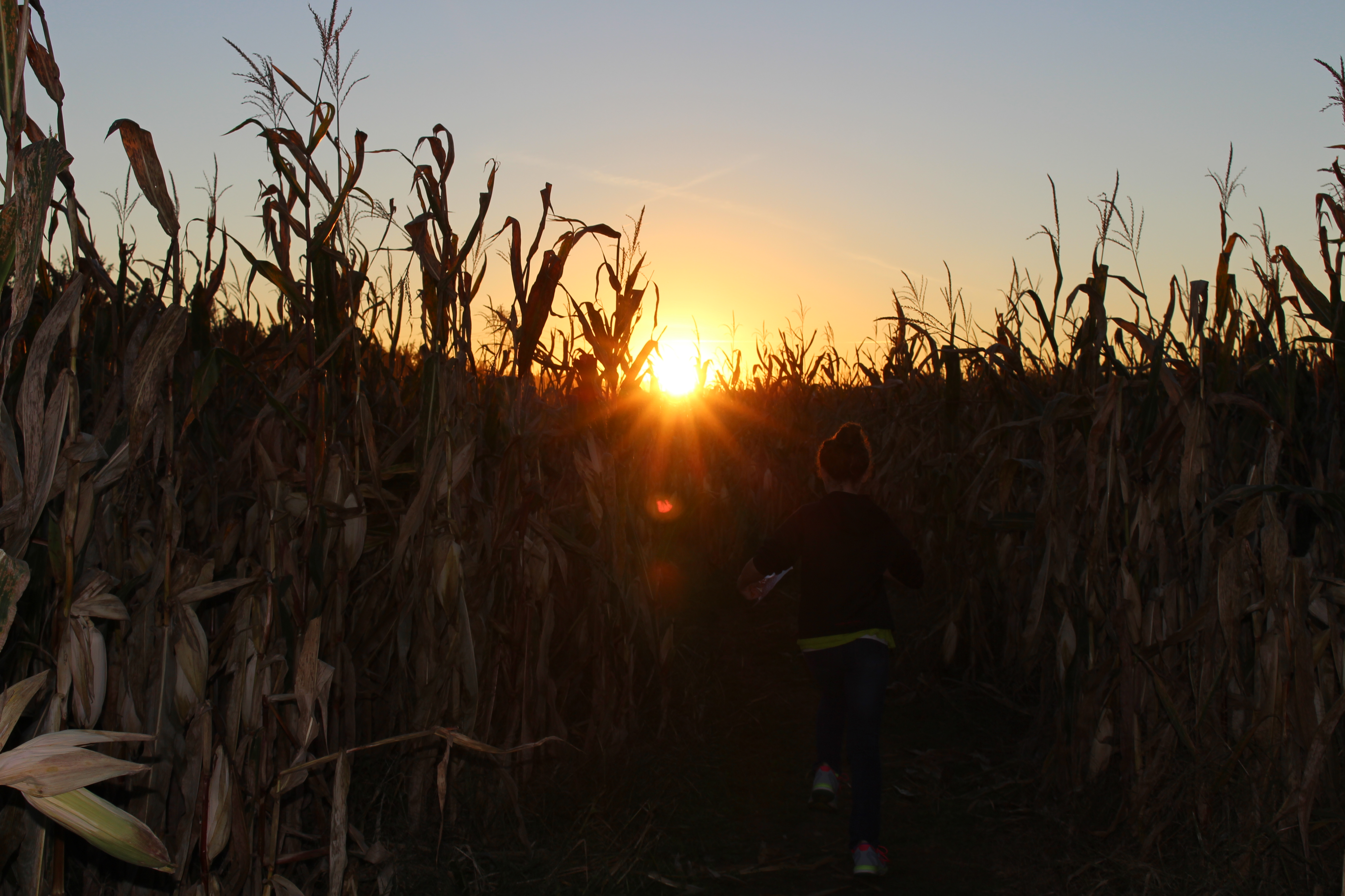 All of a sudden, in the last hurrah of the sun’s light, I saw the shadowy outline of the girls right in front of me, running and laughing and squealing with delight among the cornstalks, not phased at all by the fact that night was here and we were all still seemingly lost in the maze.