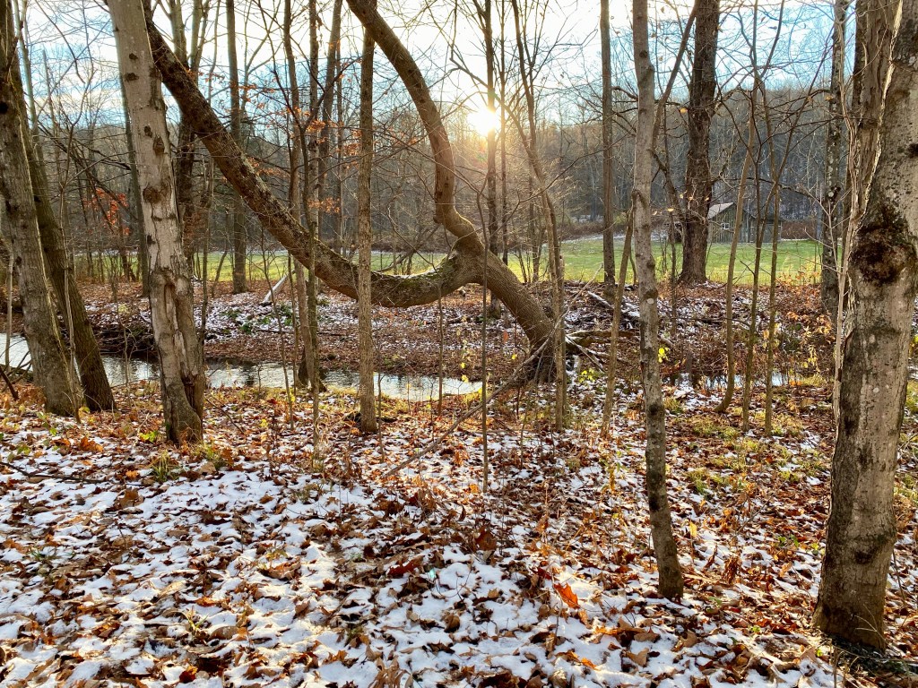 A light shining on the Vermont trail I run on. Yes, that is snow.